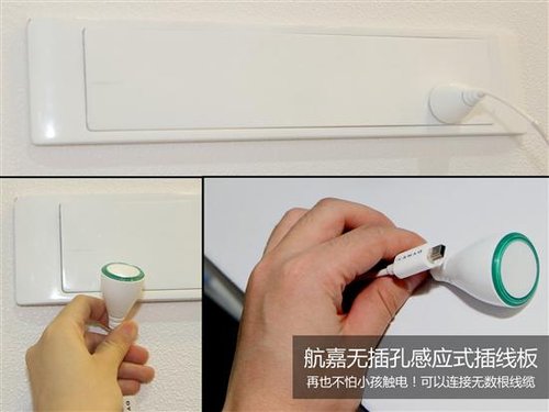 很難想像這個光禿禿、沒有任何插孔的塑料板,本來是一個插線板,與之配套的插頭通過磁鐵吸附在上面,然后通過感應式無線充電的原理,將電流隔空傳輸到線纜之上,從而為各種移動裝備充電。無插孔的插線板可以省去各種各樣的充電器變壓器,而且對于孩子來說相當安全,還可以防水,這是航嘉在本次電腦展上最具創意的產品。更多圖文報道:420瓦白金牌!航嘉臺北電腦展有神物