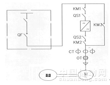 它是由3個高壓真空接觸器KM1~KM3和2個高壓隔分開關QS1和QS2組成(見上圖)。請求KM1、KM2不能和KM3同時閉合,在電氣上實現(xiàn)互鎖。變頻運行時,KM1和KM2閉合,KM3斷開;工頻運行時,KM3閉合,KM1和KM2斷開,并且?guī)酵肚泄π,項目計劃如上圖所示。